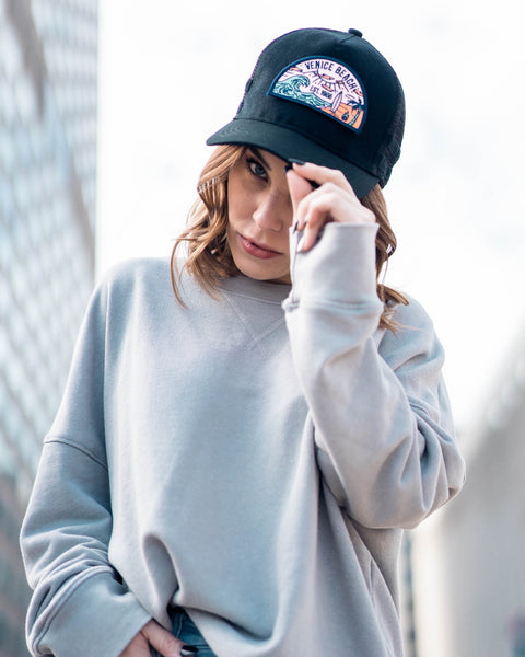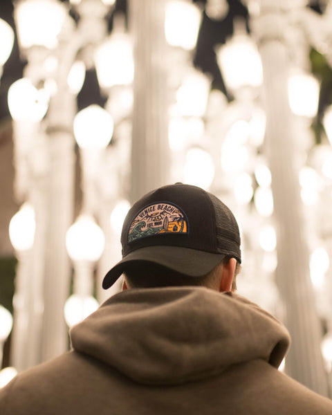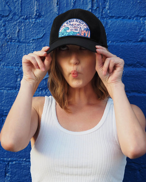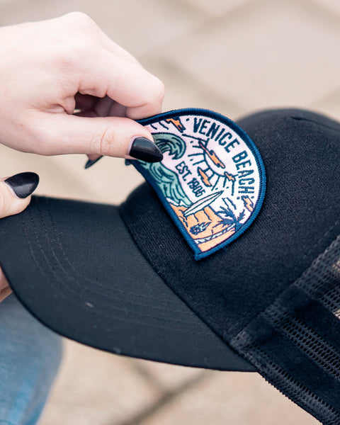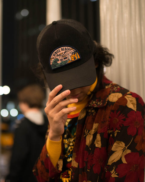 Canopy's inaugural patch has proved a hit in the streets of Venice, CA. It's soulful pinks and deep blues convey the coloring of one of the world's most well-known beachside towns and look great on our deep black trucker. Pick up this masterfully embroidered design and start daydreaming your way out into the California sun.